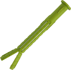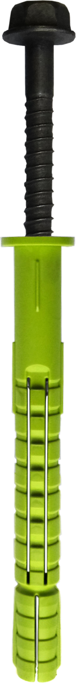 - Установите фасадный дюбель сквозь закрепляемую деталь в материал основания (сквозной монтаж) и закрутите шуруп до плотного соприкосновения пресс-шайбы шурупа с манжетой дюбеля.